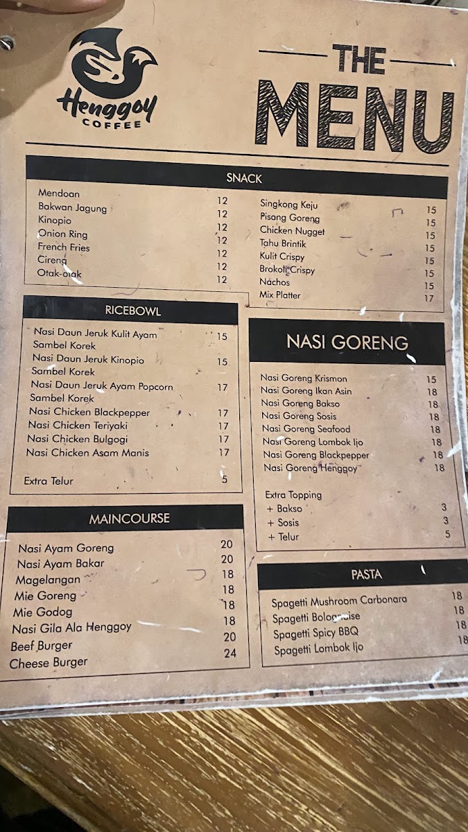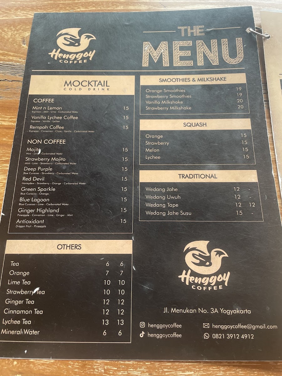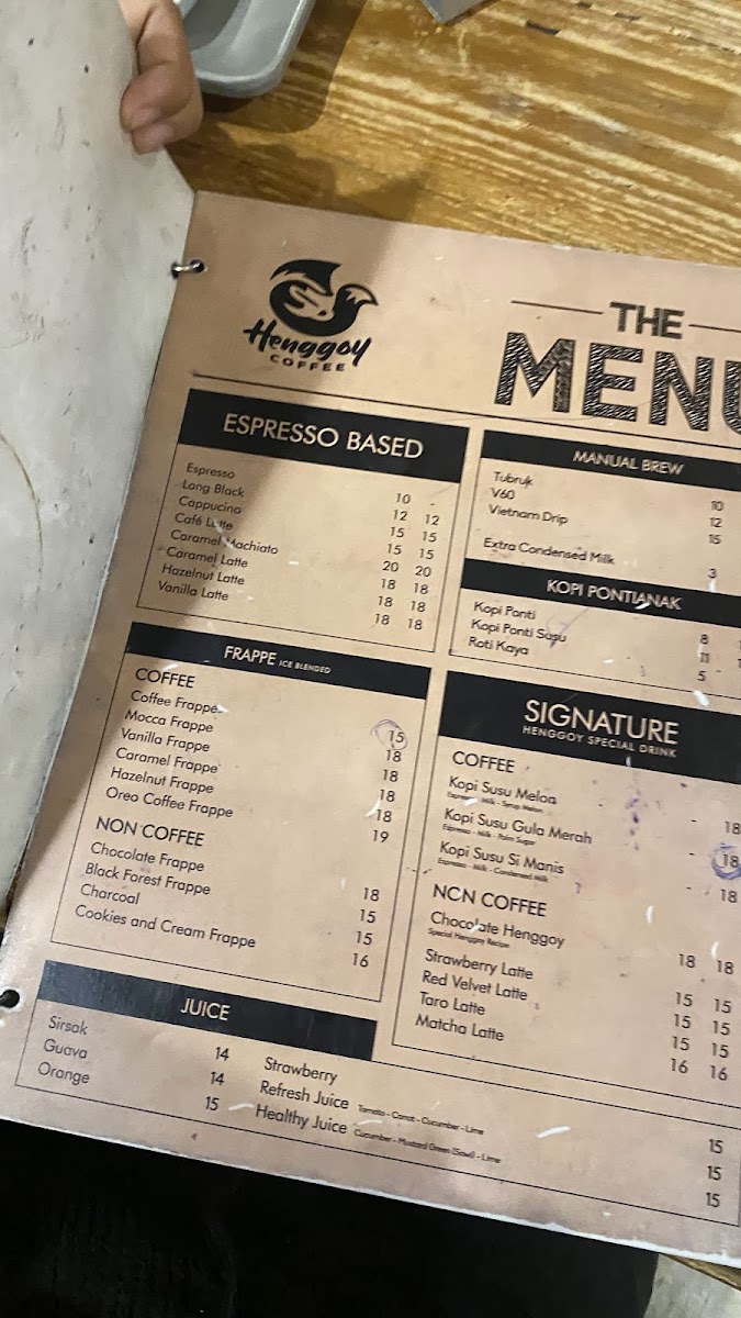Henggoy Coffee Menu